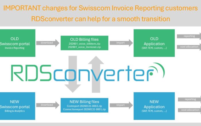 If you are a Swisscom enterprise customer and you rely on Invoice Reporting for your reporting or cost-allocation, then this change can have a major impact on your process since you will need to adapt your application for the new files. Our tool RDSconverter can help you [...]