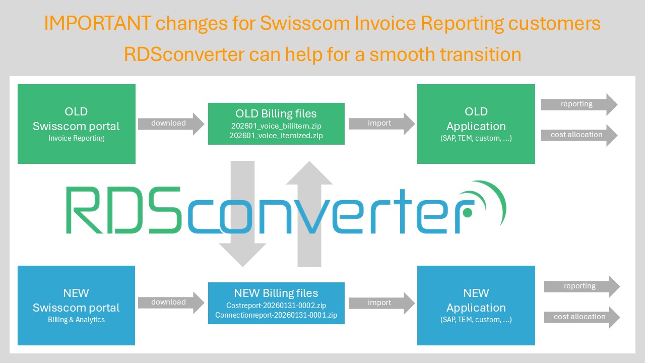 If you are a Swisscom enterprise customer and you rely on Invoice Reporting for your reporting or cost-allocation, then this change can have a major impact on your process since you will need to adapt your application for the new files.